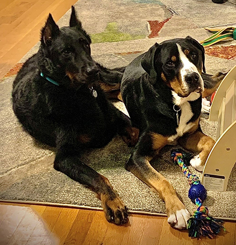 Kayt’s dogs Blue (left) and Hershey.