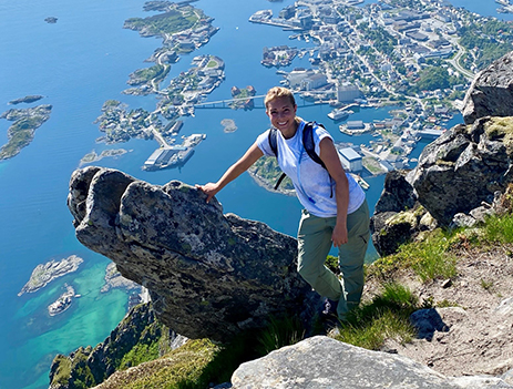 Kayt hiking in Norway’s Lofoten Islands.